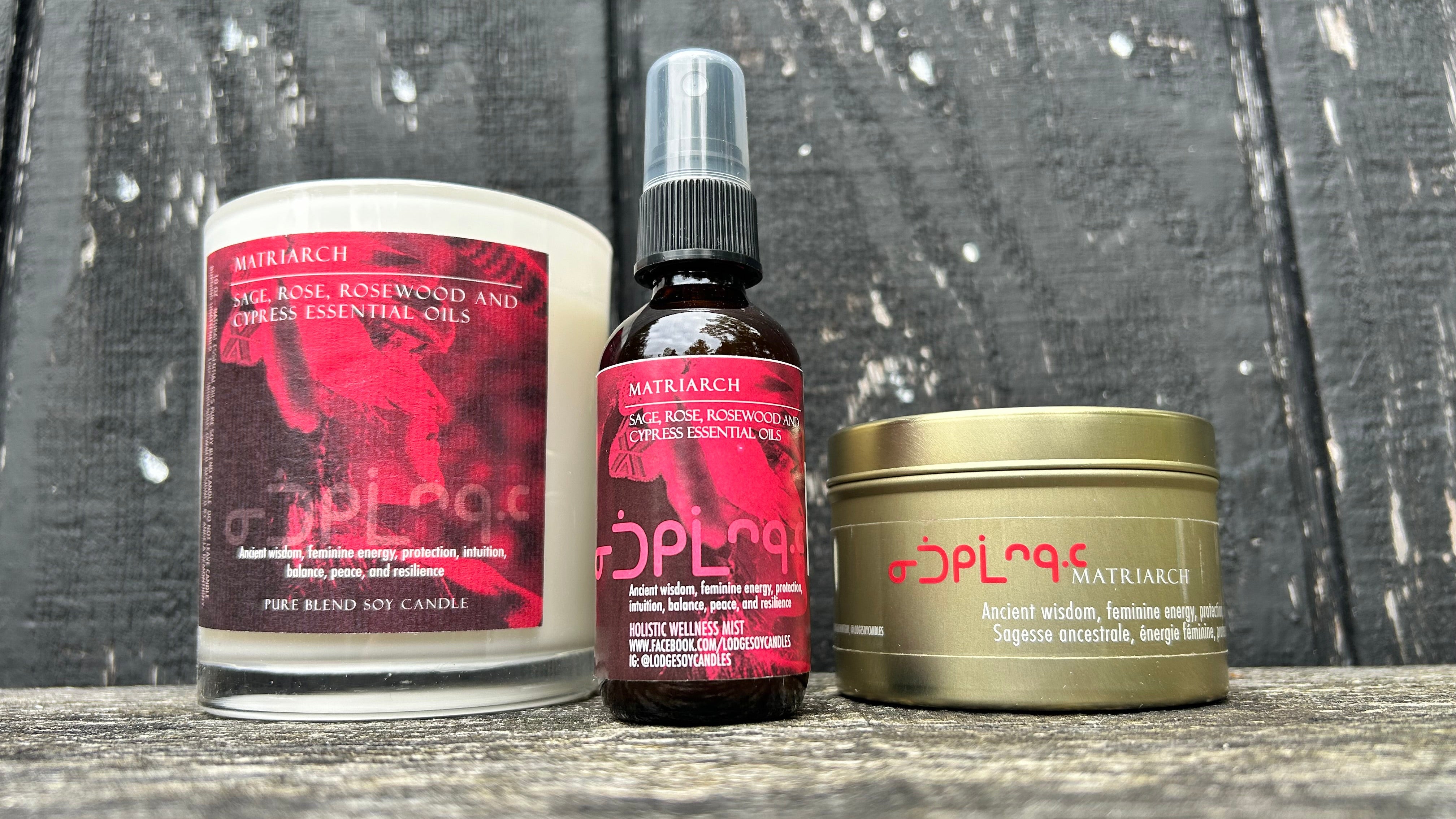 Matriarch – a scent created to honour the strong, beautiful and powerful Indigenous women leaders who uplift their families and communities by being examples of wisdom, resilience and security. This authentic blend of Sage, Rose, Rosewood and Cypress essential oils creates a beautiful balance of woodsy, earthy and sensual floral notes that evoke healing and self-love while opening your heart and raising your vibration.